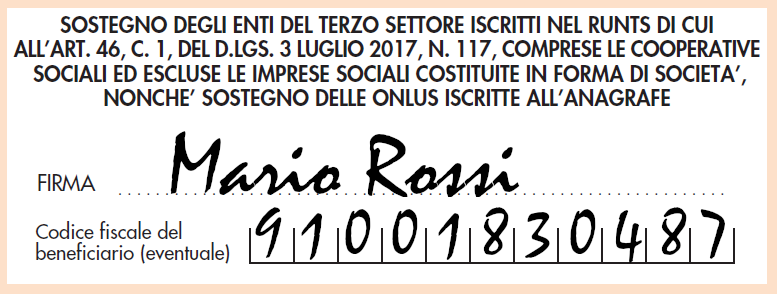 Basta la TUA firma e il NOSTRO codice fiscale 91001830487